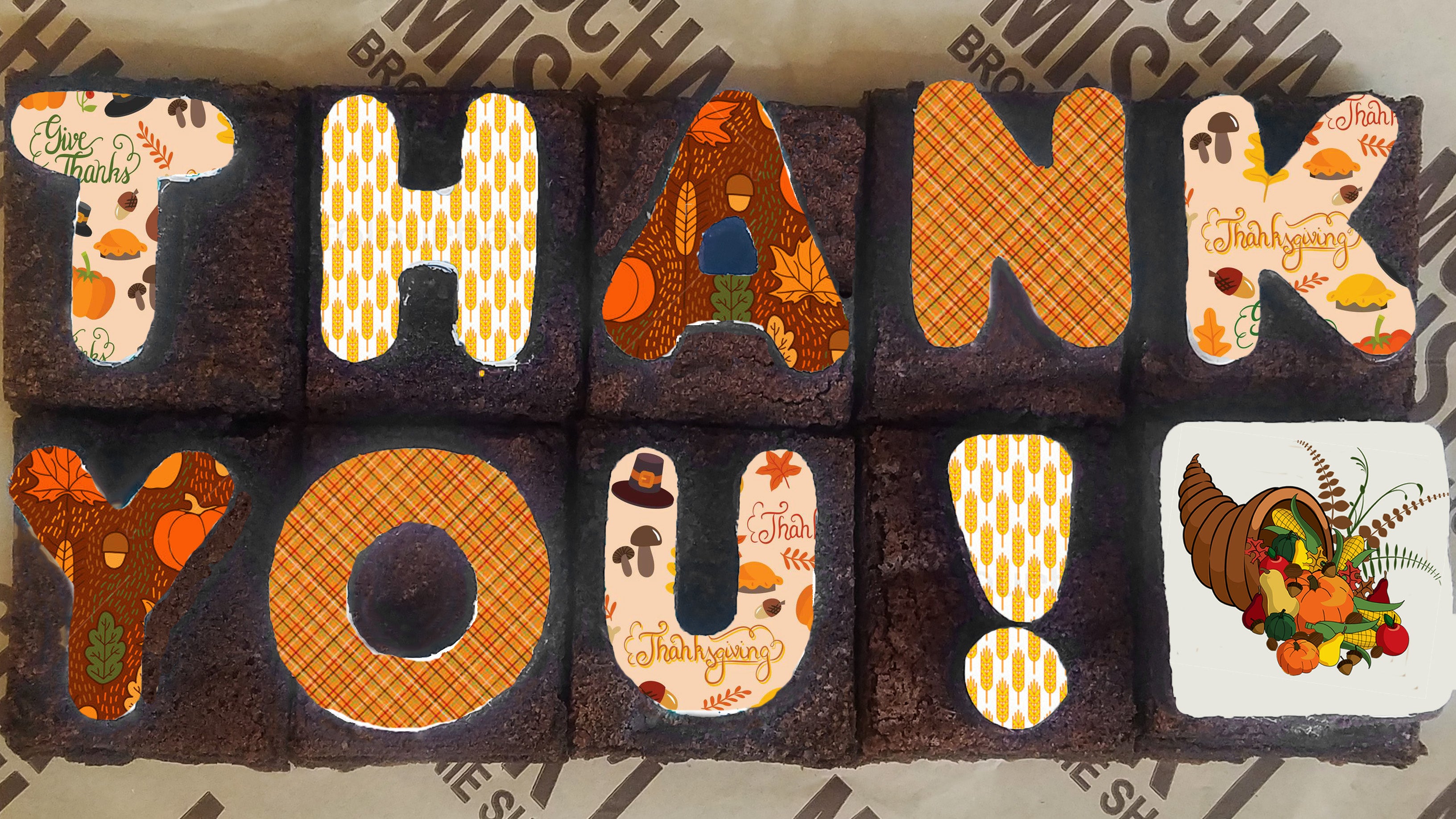 The perfect dessert for this Thanksgiving. This brownie message will beautifully decorate your table as you enjoy a day with your family and friends.